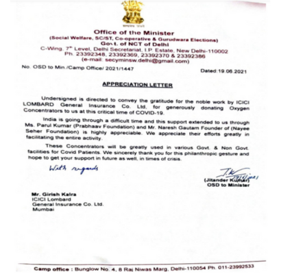 Distribution Of Oxygen Concentrators During COVID-19 Pandemic